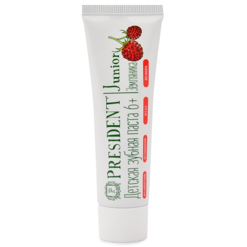 PRESIDENT Juonior 6+ (земляника) - зубная паста детская без фтора (50мл), Betafarma SpA, Италия